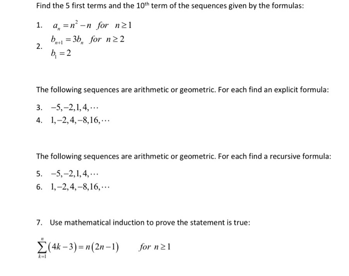 Solved Find The 5 First Terms And The 10th Term Of The Se Chegg Com