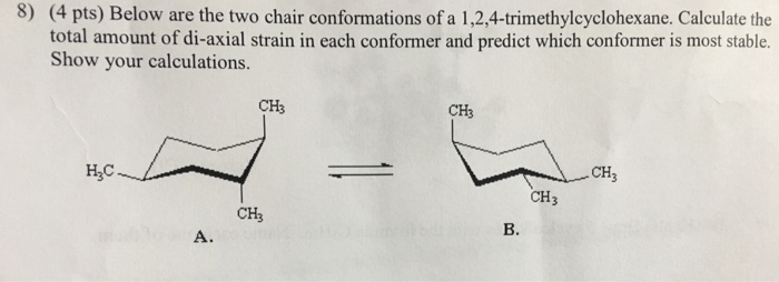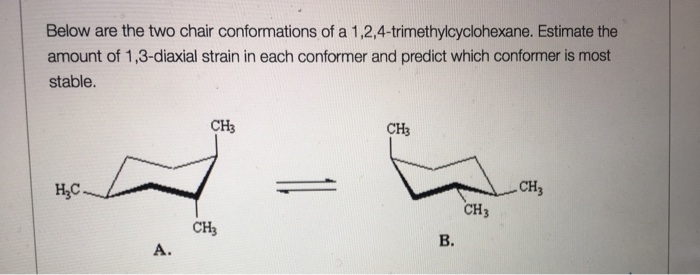Solved Below Are The Two Chair Conformations Of A 1 2 4 Trimethylcyclohexane Estimate The Amount Of 1 3 Diaxial Strain In Each Conformer And Predict Which Conformer Is Most Stable Image Study Com