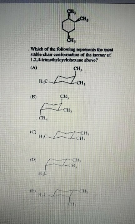Which Of The Following Is The Most Stable Conformer Of 1 2 4 Trimethyl Cyclohexane