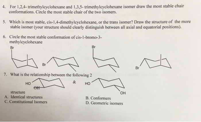 Solved For 1 2 4 Trimethylcyclohexane Isomer A Draw The Two Chair Conformations Of This Compound B Estimate The Energy Difference Between The Two Conformations You Drew In Part A C Circle The Drawing O