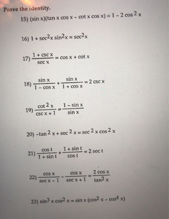 Solved Prove The Identity 15 Sin X Tan X Cos X Cot Chegg Com