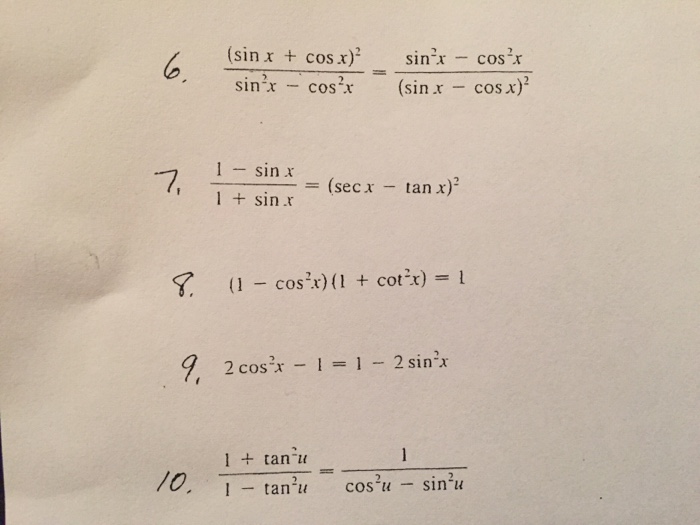 Solved Verify Each Identity Sin X Cos X 2 1 Sin Chegg Com