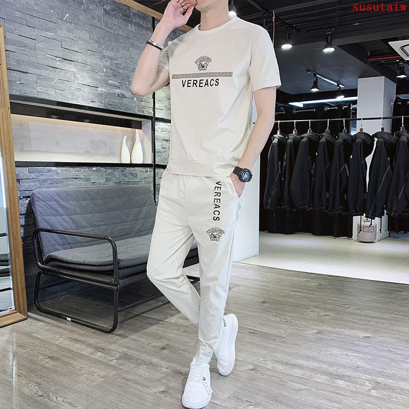 Setelan Olahraga Sweater Kaos Lengan Pendek Celana Panjang Casual Untuk Pria 2020 Shopee Indonesia