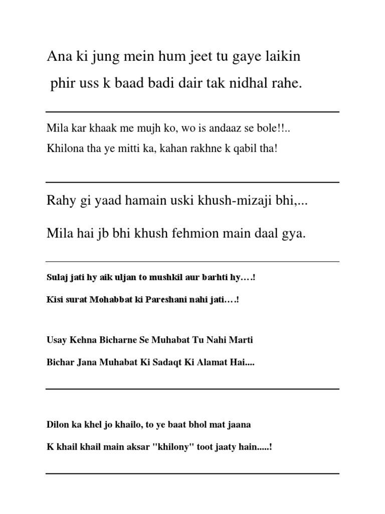 Koi Roothey Agar Tum Sey Foran Mana Leyna Ana Ki Jung Mai Aksar Judai Jeet Jati Hai Home Decor Decals Decor Poetry Collection