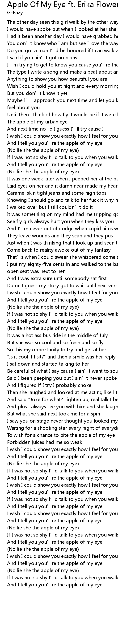 Apple Of My Eye Ft Erika Flowers Lyrics Follow Lyrics
