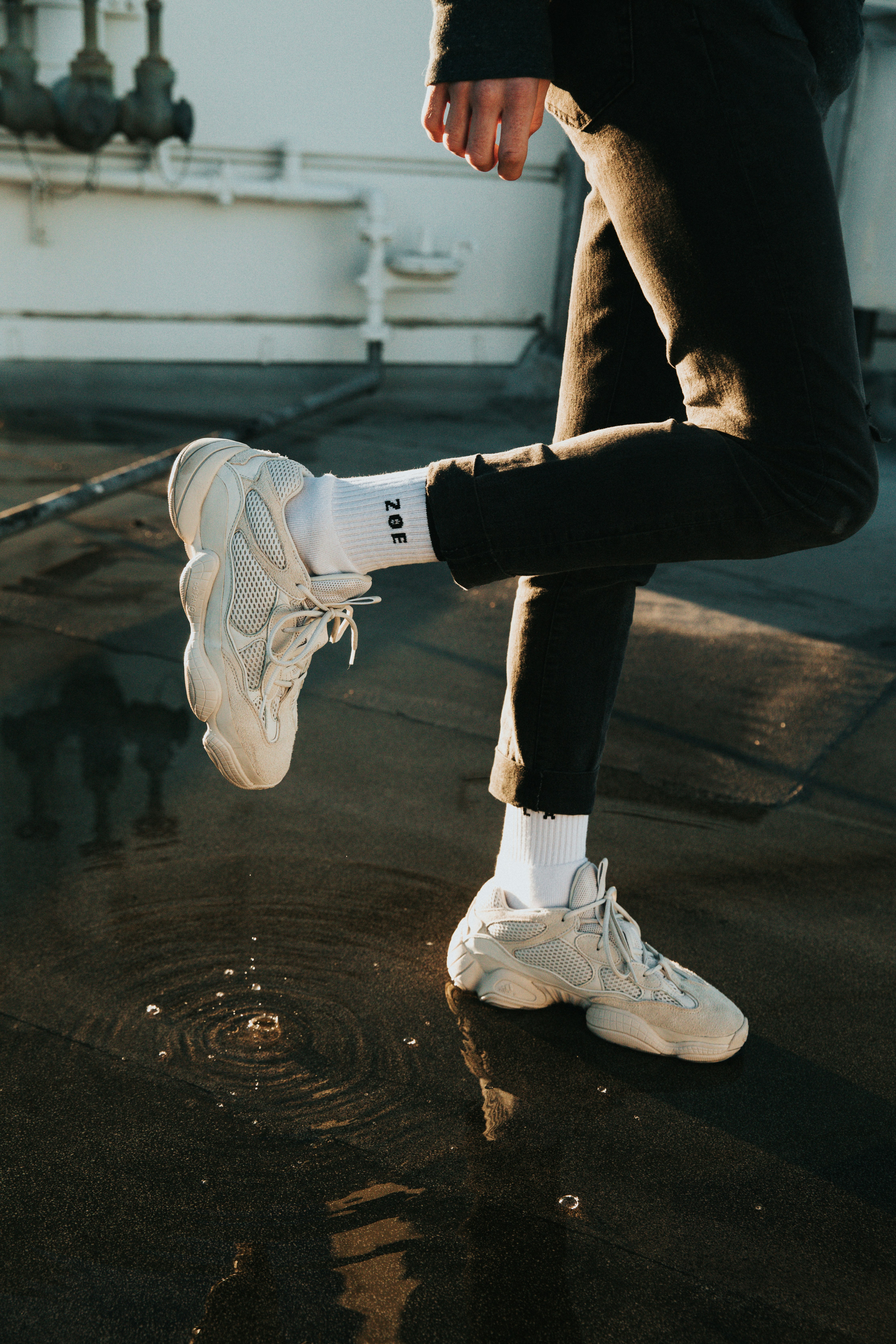 Person Wearing Black Pants White Socks And Low Top Sneakers Photo Free Apparel Image On Unsplash