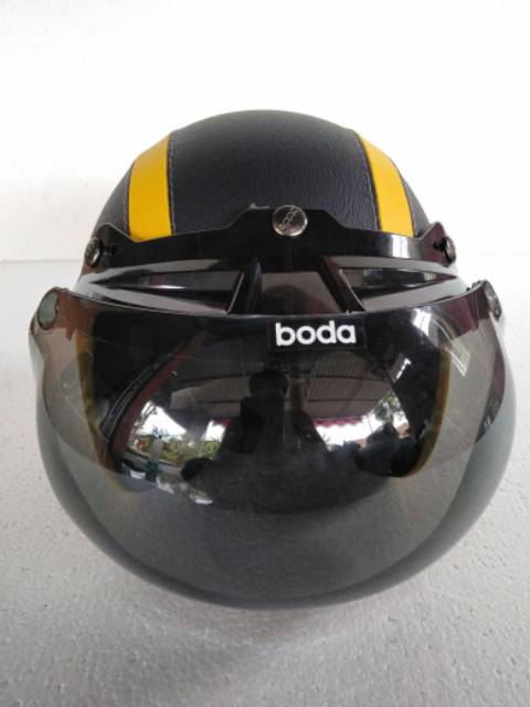 Bisa Bayar Di Tempat Helm Retro Kaca Boda Kaca Bogo Hitam Garis Kuning Shopee Indonesia