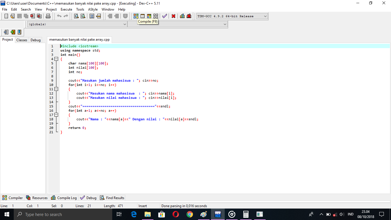 Adzanil Fajrin Program Array Di C Beserta Logika
