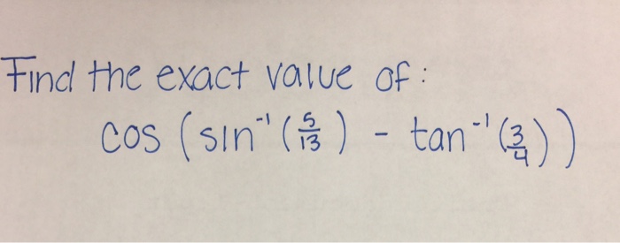 Solved Find The Exact Value Of Cos Sin 1 5 13 Tan Chegg Com