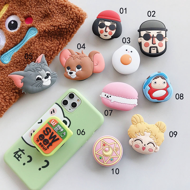 Cute Anime Pop Holder Soft Silicone Round Bracket Phone Expanding Stand Grip Clip Ring Finger Mount Tablet Cartoon Stand Bracket