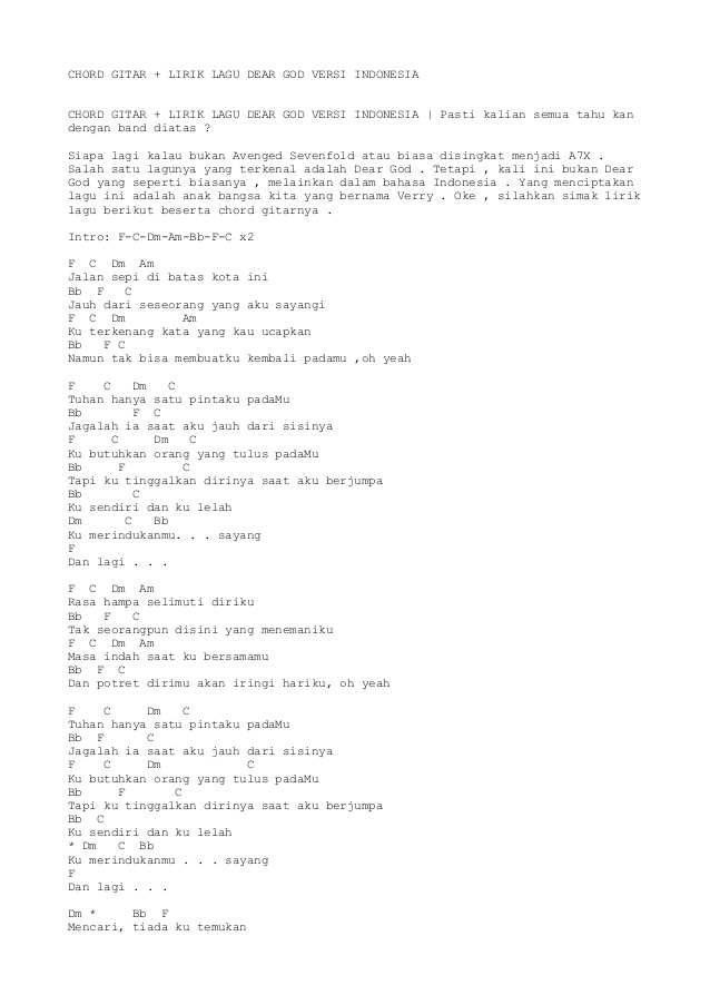 Lirik Dan Chord Lagu Dear God Versi Bahasa Indonesia