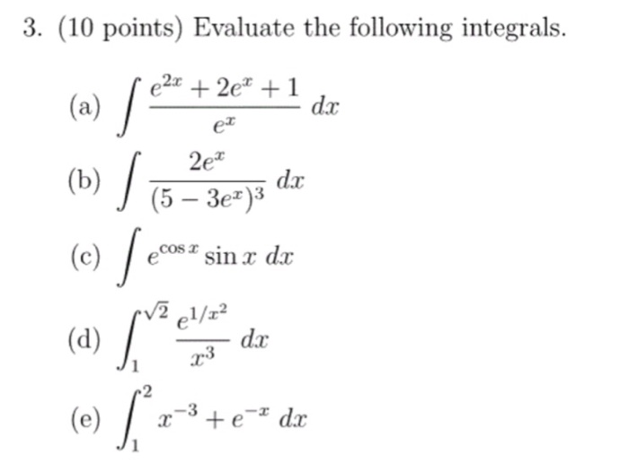 Solved Evaluate The Following Integrals Integral E 2x Chegg Com