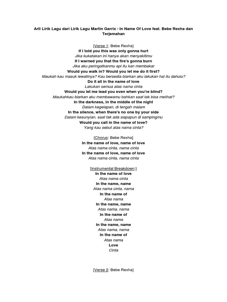 In The Name Of Love Terjemahan Dalam Bahasa Indonesia Dalam Sebuah Kalimat Dalam Bahasa Inggris