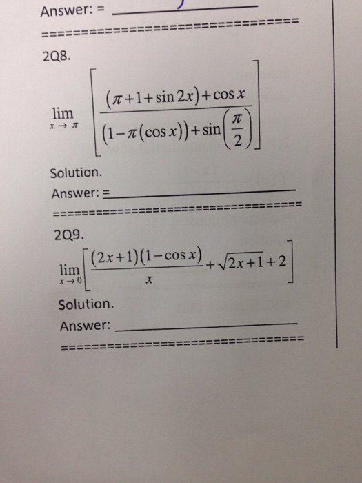 Solved Lim X Right Arrow Pi Pi 1 Sin 2x Cos X 1 Pi Co Chegg Com