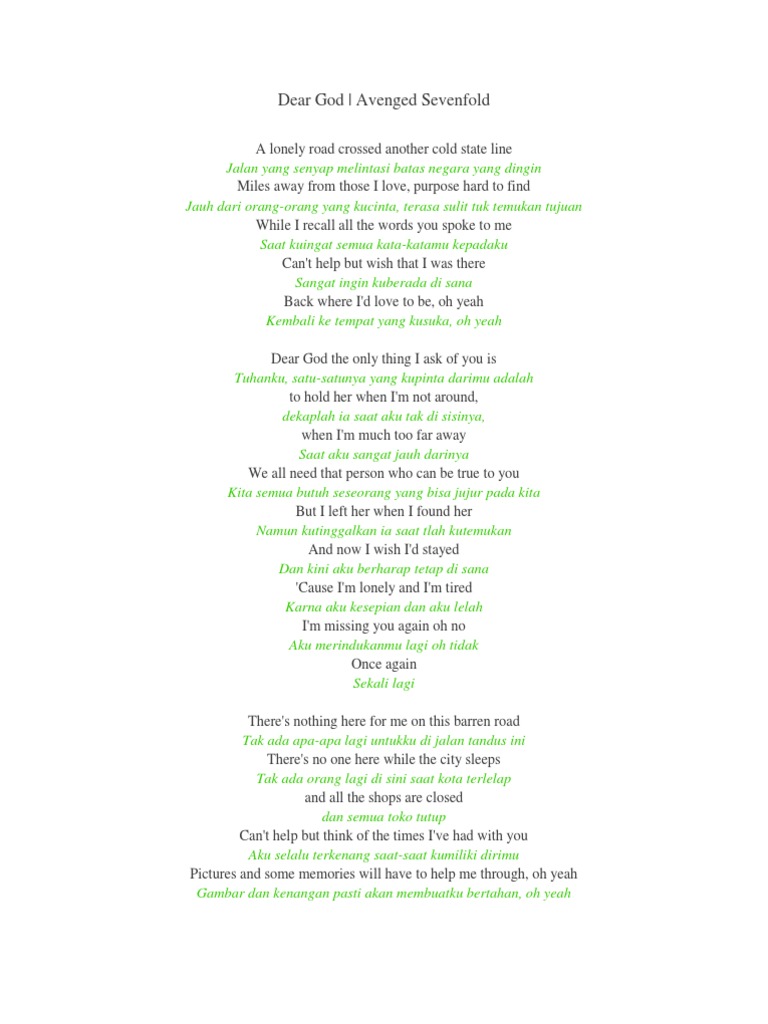 Lirik Lagu Dear God Dan Terjemahannya Avenged Sevenfold Blog Berbagi