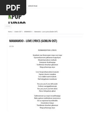 Pop Lyrics Mamamoo Love Lyrics Goblin Ost