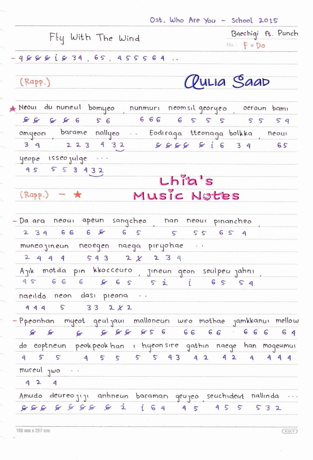 Not Angka Baechigi Feat Punch Fly With The Wind Ost Who Are You School 2015 Not Angka Lagu Ost K Drama