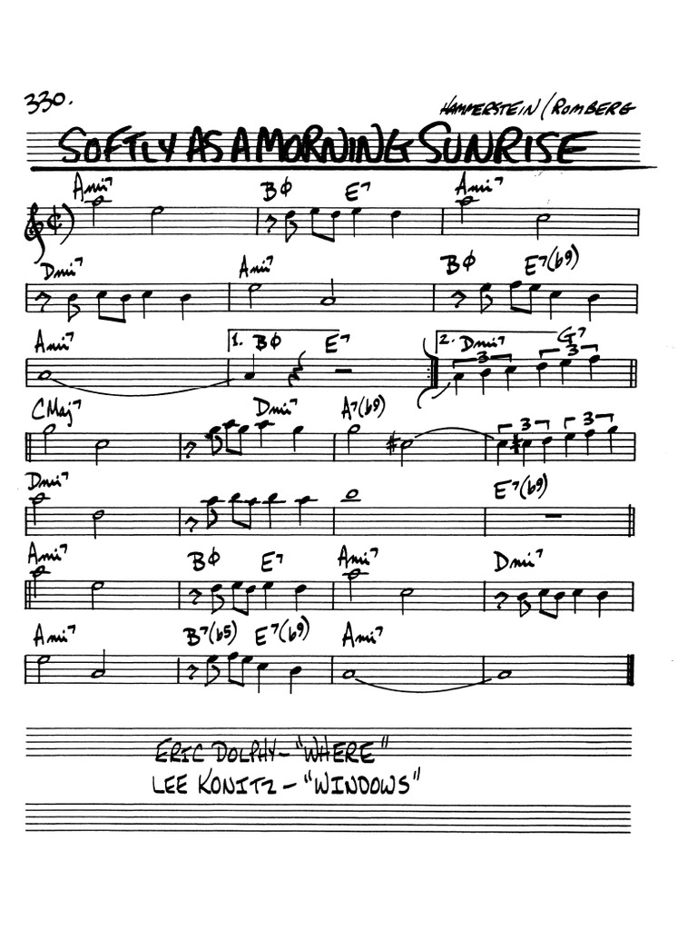 Hammerstein Softly As In A Morning Sunrise Sheet Music Real Book Melody And Chords Real Book