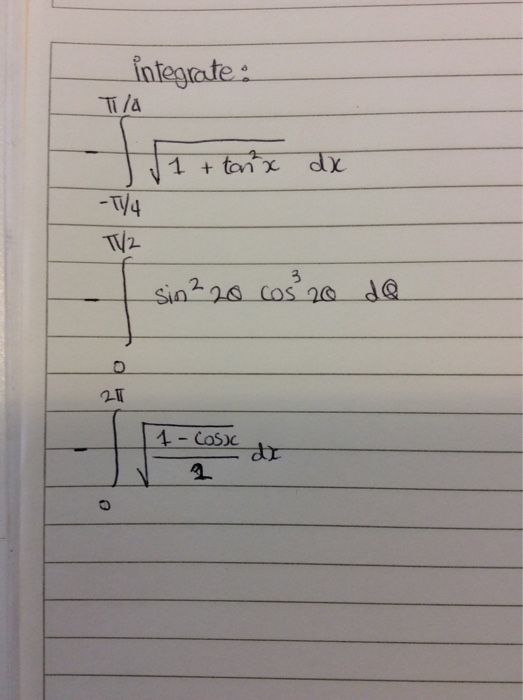 Solved Integrate Sqrt 1 Tan 2x Dx Between Pi 4 To Chegg Com