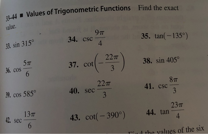Solved Values Of Trigonometric Functions Find The Exact V Chegg Com