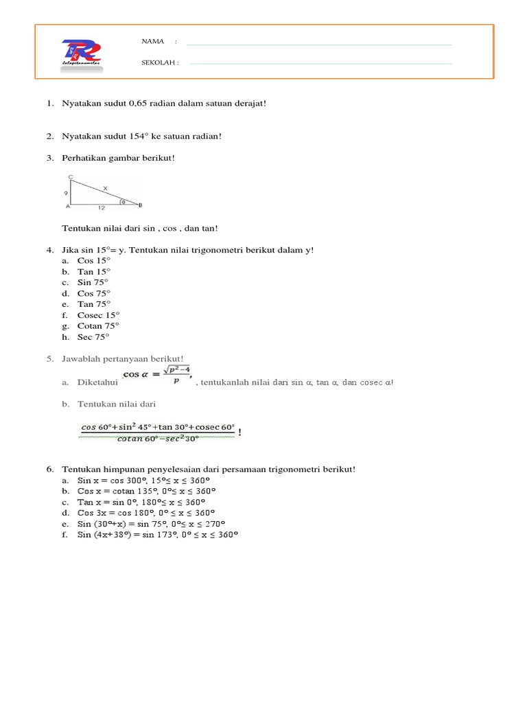 Soal Dan Jawaban Trigonometri Tangen Jumlah Dan Selisih Sudut