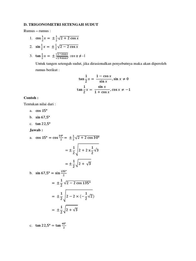 Rumus Trigonometri Sudut Ganda Dan Sudut Tengahan Materi Lengkap Matematika