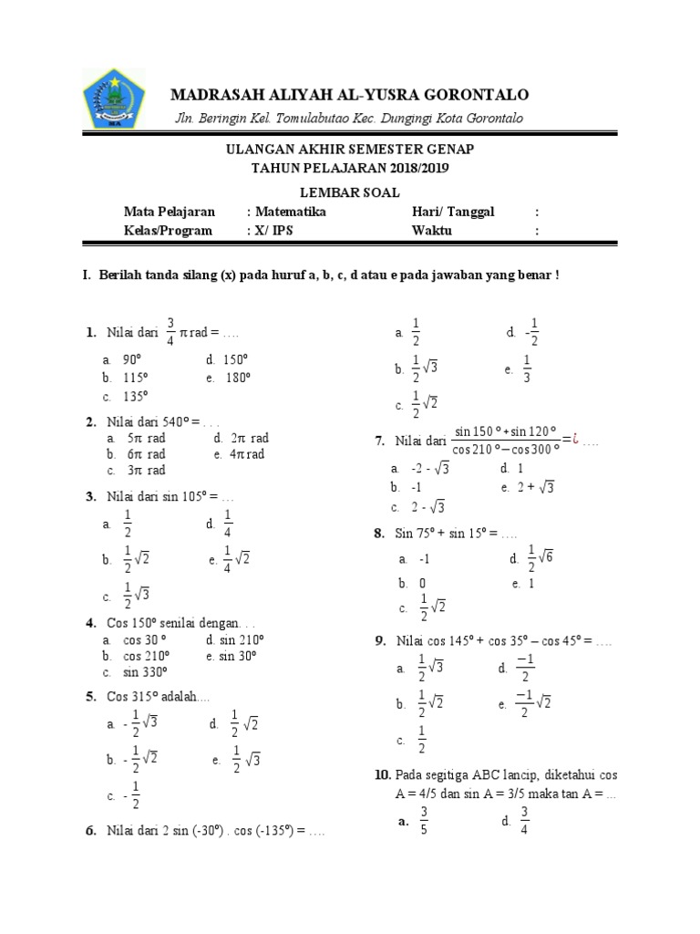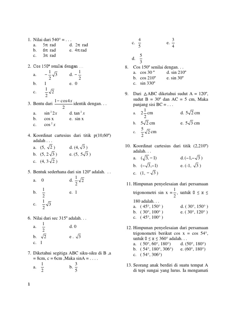 Contoh Soal Bab Trigonometri Dan Pembahasannya
